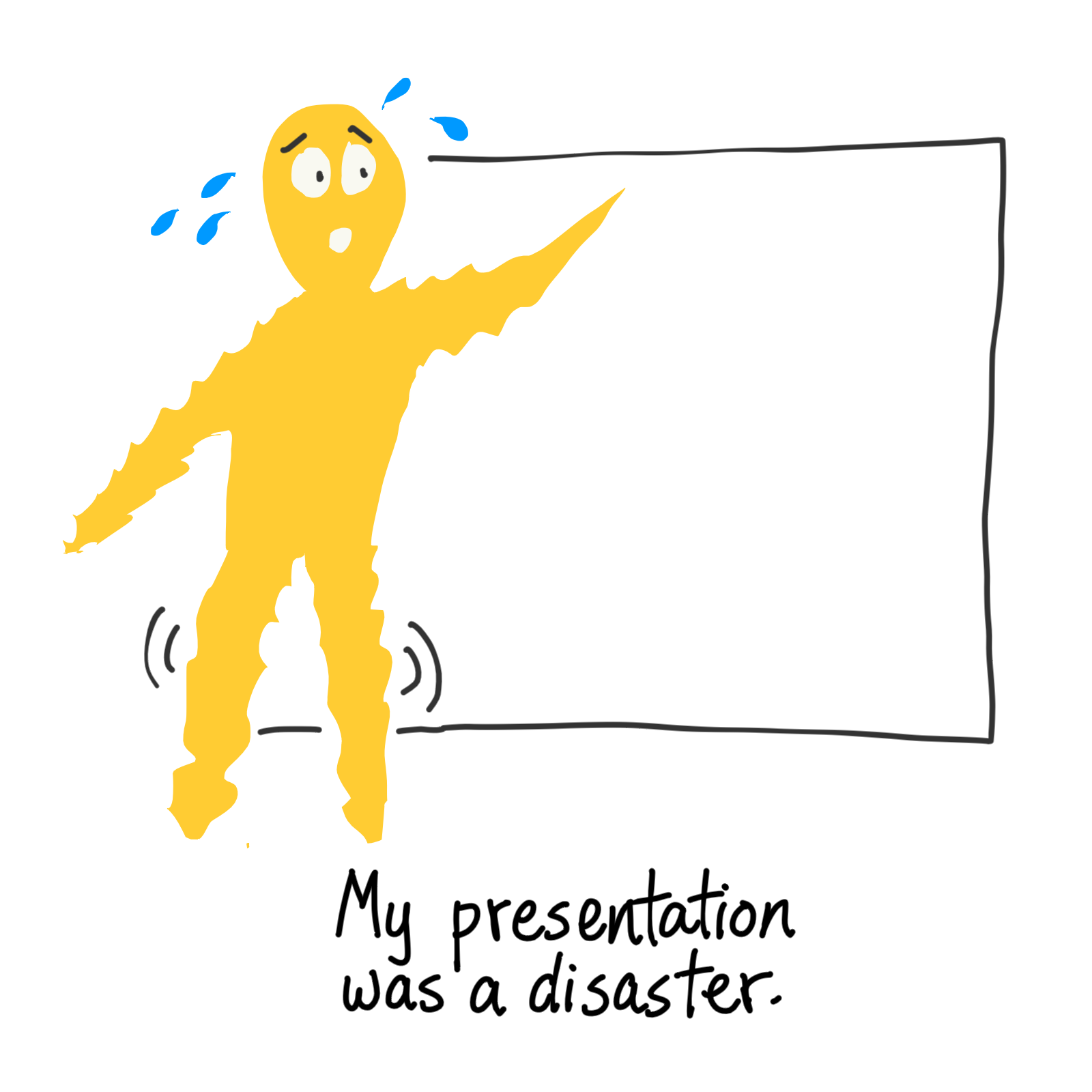 Step 2. Make It Visual: Above the negative thought, draw a simple image representing what happened. For instance, for My presentation was a disaster, you could draw a wide-eyed, sweating figure with shaky knees.
